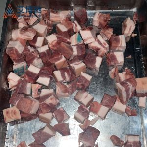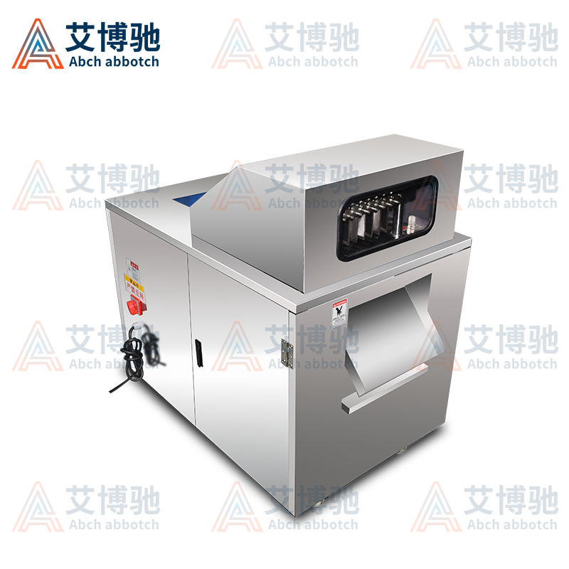 艾博驰ABCH-13A禽肉类剁块机适合禽类,鱼类的剁块,剁段需求,输送装置采用单片食品级PE材质胶板设计,可单片更换,非常方便,压料输送装置采用针式链条设计,有效防止物料打滑后退或输送不均匀等弊端。丁刀组丁刀刀距宽度可定制规格(2cm、2.5cm、3cm、3.5cm)等,标配3CM,最小2cm,实际成品小于丁刀刀距0.2cm,长短1cm-5cm可调,物料需冷冻,效果更佳!