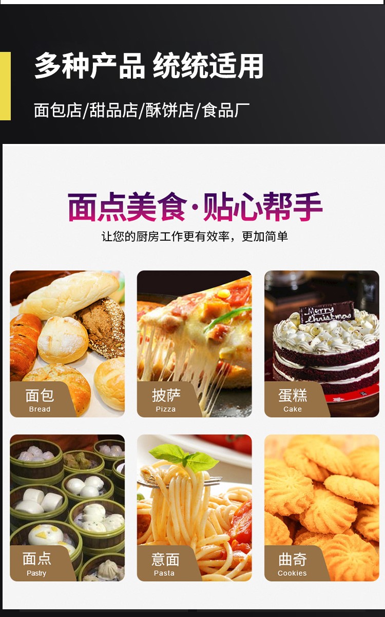 2.强劲动力,高效省时功率电机驱动,快速揉面,节省时间和体力,无论是家庭使用还是商用场景,都能轻松应对大批里制作需求。