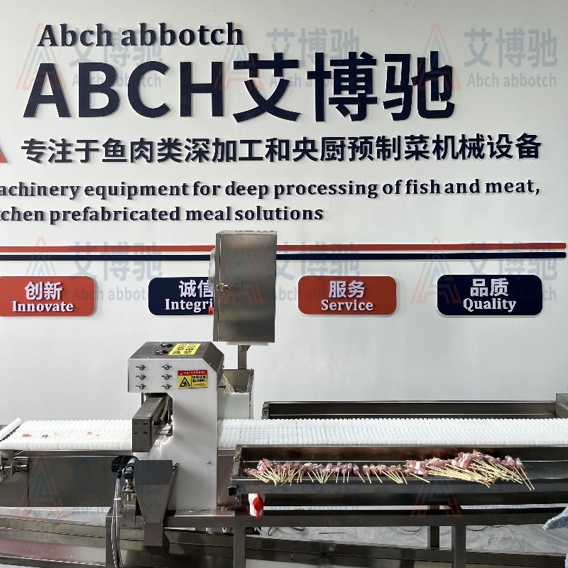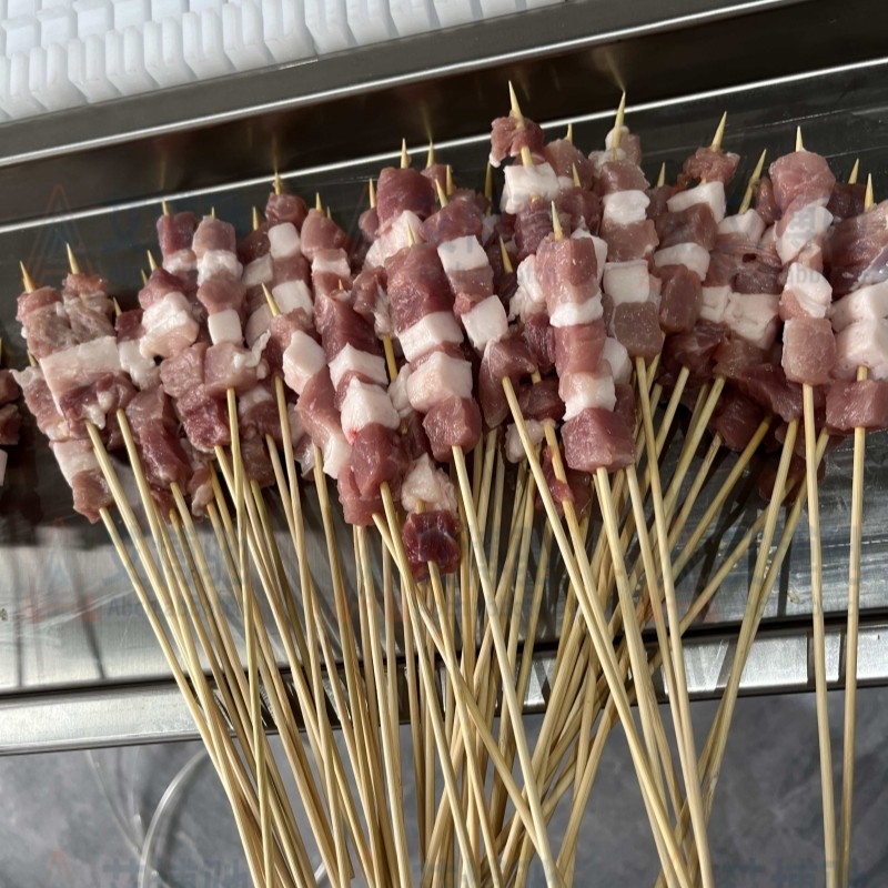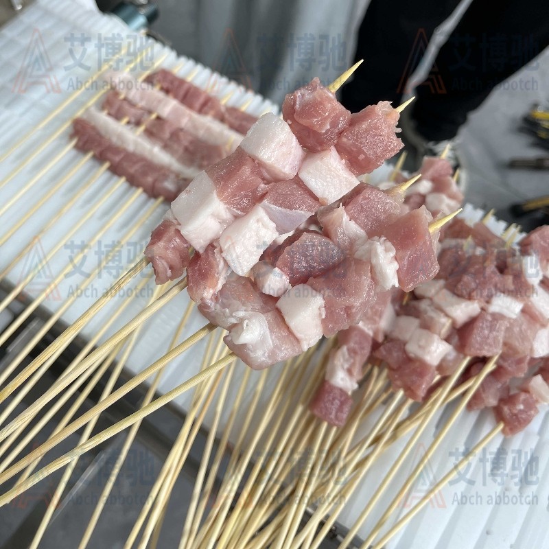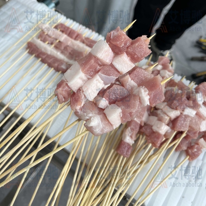 ABCH穿串机新款机器厂家现场试机串猪肉串,效果非常不错