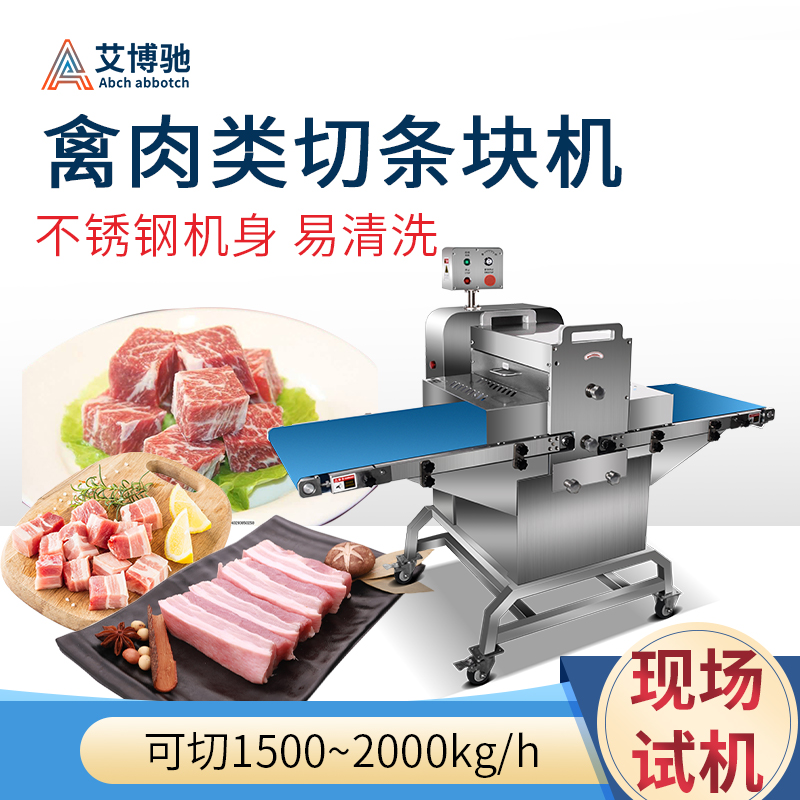 采用优质不锈钢整体机身设计,强度高,无污染,符合食品安全生产规范 表面经过深度抛光和喷砂处理,外表光滑,易于清理 上刀下辊交叉配合,锯齿刀刃切削,对肉类进行精密切割, 保证食材切面平整,品质如一。 安全开关,可有效地保护使用者的安全。 悬臂式刀组,可轻易拆卸、清洗,不同规格的刀组更换便捷。 工作效率高,产量大。 速度快,效率高。 1500W 减速电机电机,易启动,扭矩大,切削轻快,更省电。 拆卸组装容易,易于清理。 适用于各种禽肉类切条切块。