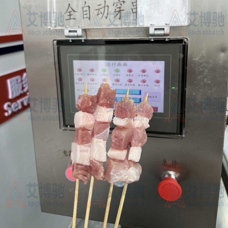 ABCH穿串机新款机器厂家现场试机串猪肉串,效果非常不错