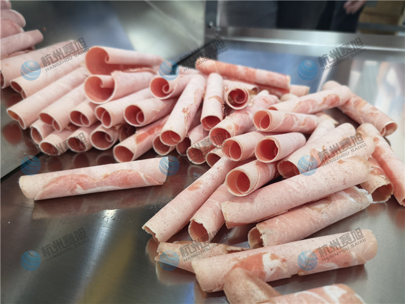 但是呢羊肉卷不同于其他肉类,那么的好弄,要知道用手工切卷是很困难的,所以我们厂专门为牛羊肉切卷,研发了一款牛羊肉切卷机:下面请欣赏才艺,切羊肉卷。