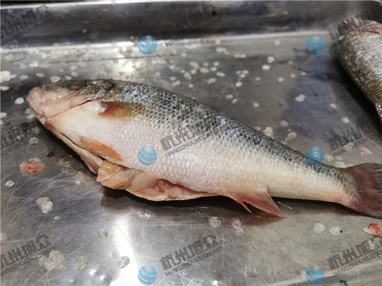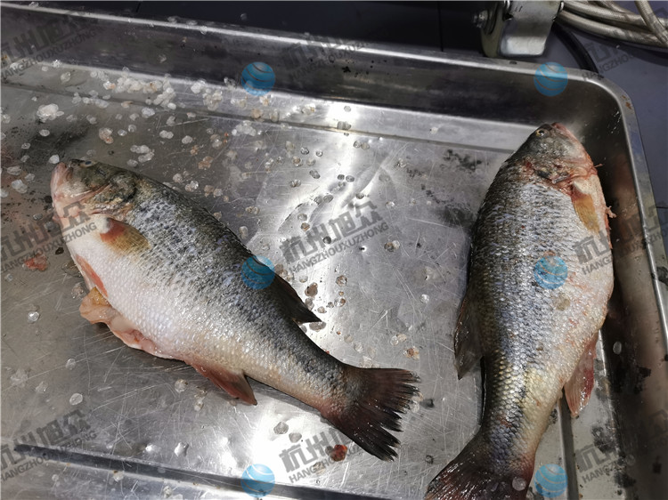 杭州客户亲自来厂试机,开肚去鳞杀鱼机——1.2斤鲈鱼开肚去鳞效果!