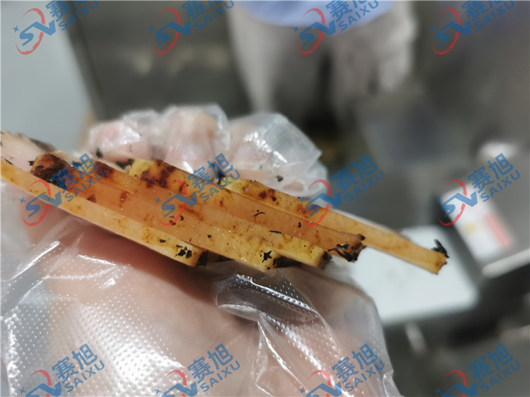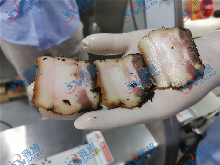 一客户带了几块梅干菜扣肉来到本厂试机,这客户他们的产量一天好机千斤,一直想买一台合适的设备去代替人工,因为人工的成本太高了,所以一直在选合适的设备,于是再网上看到我们公司的信息,联系到了我们,然后就安排来厂免费试机,设备呢也没让客户失望,客户当场定购设备,直接提货!来看看效果有多好: