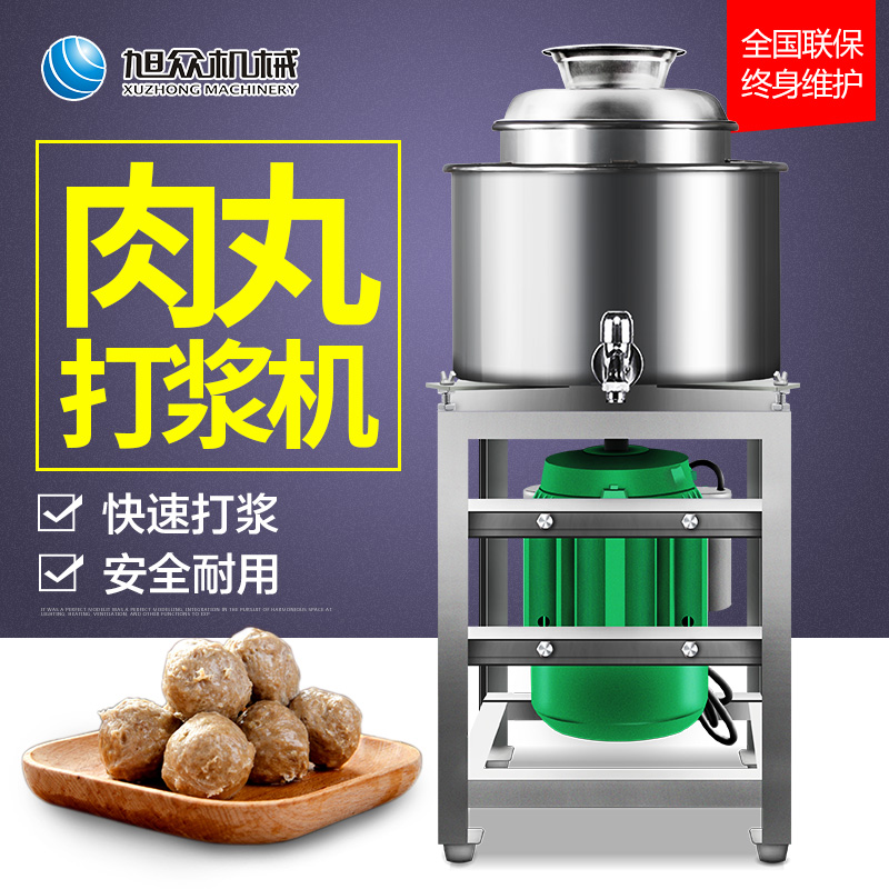杭州旭众肉丸打浆机:机器具有美观大方,坚固耐用,操作维修方便,高效省电等特点,是加工猪肉丸,牛肉丸,鱼丸之理想设备自问世以来备受用户欢迎,打浆机装肉量为5-25公斤(大、小型)。开机15-30分钟即可完成打肉、配料、搅拌成浆,比你们手工捶打的肉浆精细,还不费力,所产出来的得肉丸、鱼丸、弹性好、色泽洁白。干净、卫生、安全,是你做各种肉丸最好的选择。